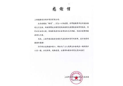 上海勞保協(xié)會(huì)感謝信
