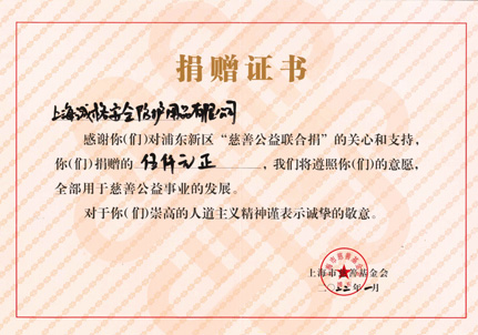 捐贈(zèng)證書-上海市慈善基金會(huì)浦東