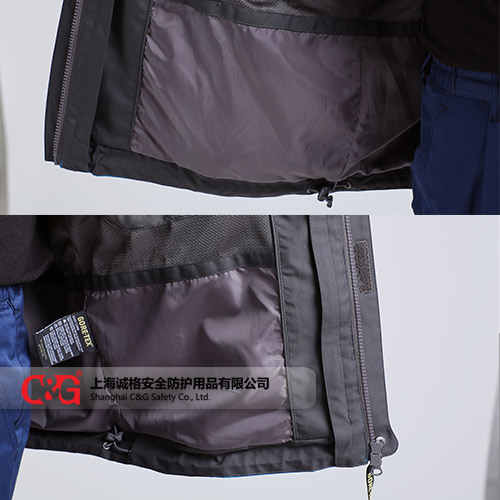 沖鋒衣 CG-CFF804采用符合涂層防水透氣面料制作,防水指數(shù)5000以上,可防中大雨;接縫全部采用壓膠防水拉鏈;內(nèi)膽采用高效保暖羽絨棉,可單獨穿著;風(fēng)帽可拆卸。