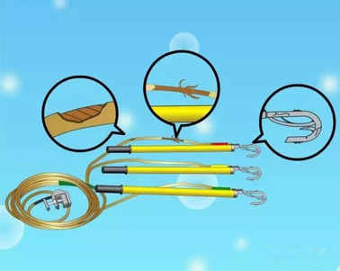 (5)攜帶型短路接地線等使用前應(yīng)檢查是否完好,如發(fā)現(xiàn)絞線松股、斷股、護(hù)套嚴(yán)重破損、夾具斷裂松動等均不準(zhǔn)使用。