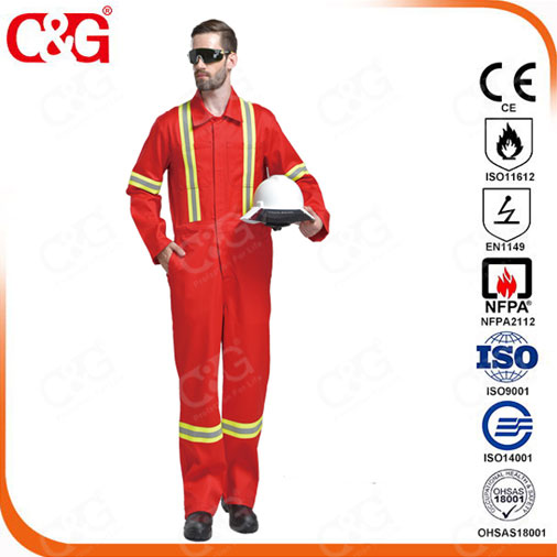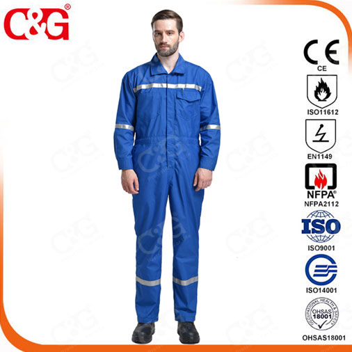阻燃服采用阻燃面料,其面料中阻燃纖維使纖維的燃燒速度大大減慢,在火源移開后馬上自行熄滅,而且燃燒部分迅速炭化而不產(chǎn)生熔融、滴落或穿洞,給人時間撤離燃燒現(xiàn)場或脫掉身上燃燒的衣服,減少或避免燒傷燙傷,達到保護的目的。