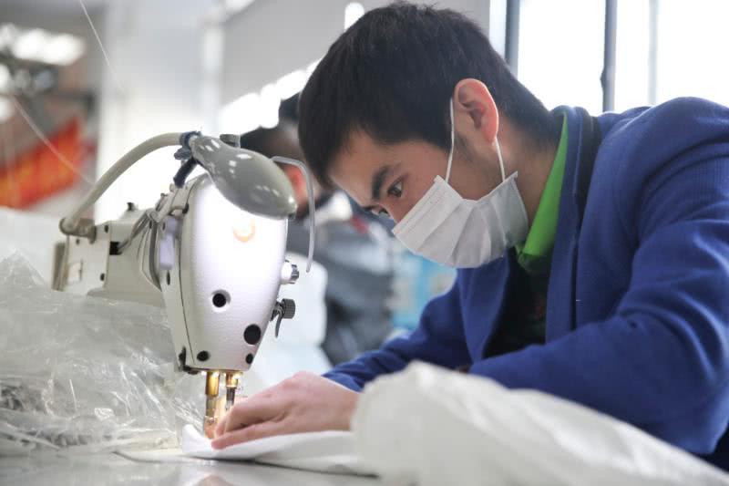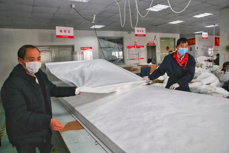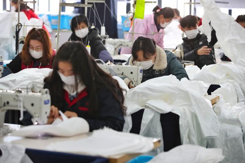 上海誠格安全防護(hù)用品有限公司防護(hù)服生產(chǎn)車間經(jīng)過了幾天的設(shè)備調(diào)整,50多個(gè)車位,70多名工人正在加班加點(diǎn)趕制醫(yī)用防護(hù)服。
